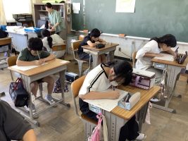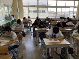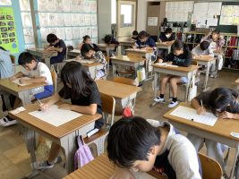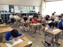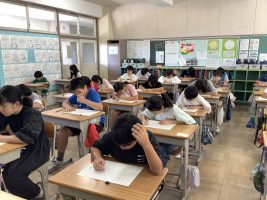 5時間目に4年生で習った漢字のテスト「無限城カップ」を開催しました。どのクラスの児童も真剣に取り組みました。