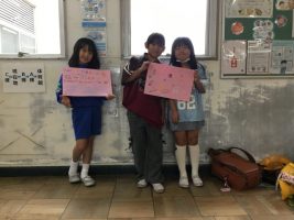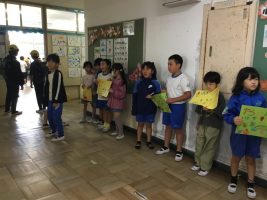 みんなでポスターをつくって、大きな声であいさつすることができました。