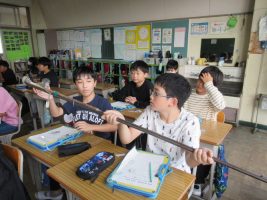 総合の時間に、ゲストティーチャーを3名お招きし、環境・行政・働くこととSDGsとの関連を踏まえたお話をしていただきました。児童は3つの分科会に分かれ、それぞれの講話でメモを取りながら真剣に話をきく姿が見られました。