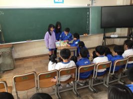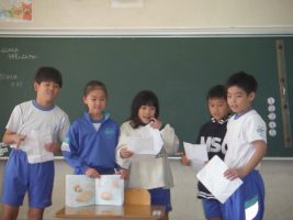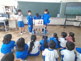 国語の授業でおすすめする本をグループごとに一冊選び、読み聞かせを行いました。1年生に楽しんでもらえるよう練習を繰り返し、上手に発表することができました。