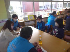 学校運営協議会委員の方々と6年生の児童のみなさんが、地域と学校の連携について意見交換をしました。