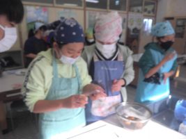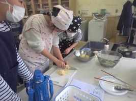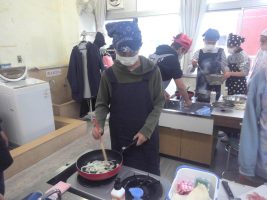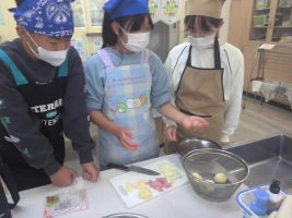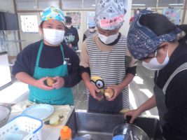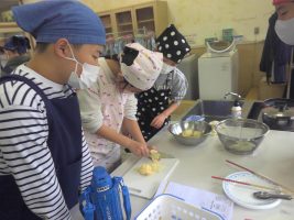 ベーコンポテトをつくりました。じゃがいもの皮むきを包丁で行ったり焦げないように炒めたりするのが大変でしたが、 上手につくることができました。