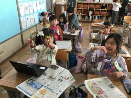 生活科の学習で大切に育てたアサガオのつるを利用して