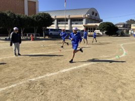 体育で、1000m走の計測を行いました。これまでの練習を生かし、自分に合った速さで走り抜きました。