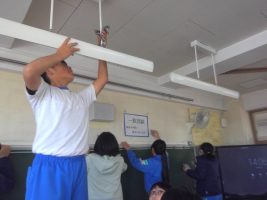お世話になった教室や廊下の汚れをきれいにしています。 普段手の届かないところを友達と協力しながら掃除しています。 気持ちもすっきりして冬休みを迎えられそうですね。