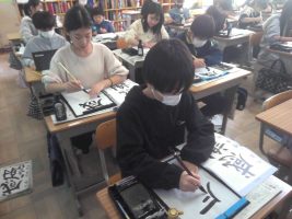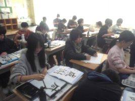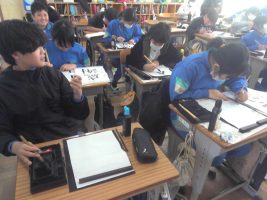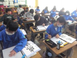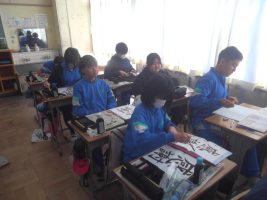 書写の学習で、「感謝」を書いています。感謝の気持ちを込めて一枚一枚丁寧に書いています。