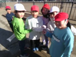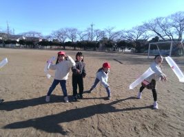 外で元気に「かざぶくろロケット」や氷で遊びました。 かさぶくろロケットを遠くにとばすためには、おもりにするテープをどこにはったらよいか、 羽根の位置をどうしたらよいかを考えながら学習しました。