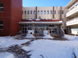昇降口前や北門側の横断歩道等、先生方で除雪作業を行いました。12日(木)は安全に気を付けて登校してください。