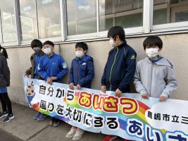 低学年のお手本になるように、元気な声で挨拶を行います。