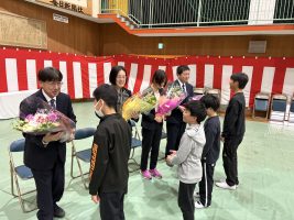 離任式が行われました。子供たちはお世話になった先生との最後の別れを惜しんでいました。異動される先生方、新しい学校でも頑張ってください!