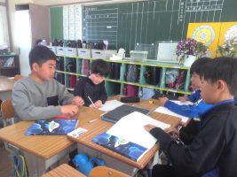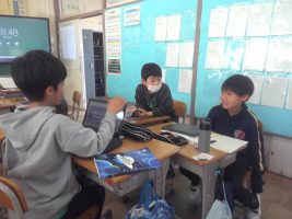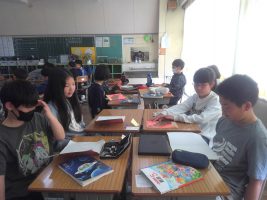 国語の学習で、名前を使って自己紹介をしました。自分の好きなことや食べ物を友達に伝えることができました。