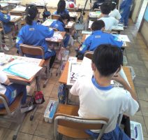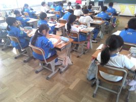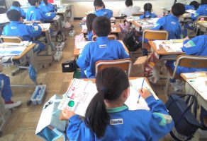 絵の具と水の量を調整して絵を描いていました。算数の授業を楽しく受けていました。