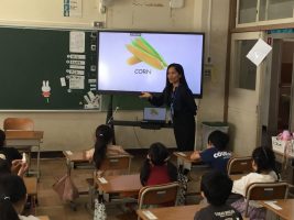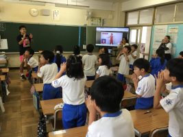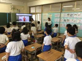 10/8 1年生 外国語活動Do you like ~?の質問にYes,I do.No,I don’t.で答える学習しました。 子ども達は、楽しそうにYes と Noで答えていました。