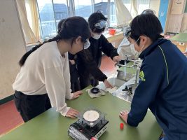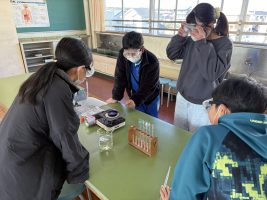 水溶液の実験を行いました。匂いを嗅いだり、熱したりして、水溶液の特徴を調べました。
