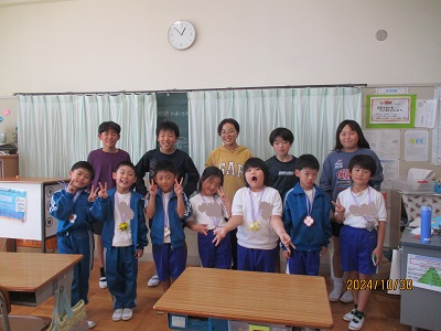 また校舎内では、6年生が1年生と一緒に仲良く遊びました。