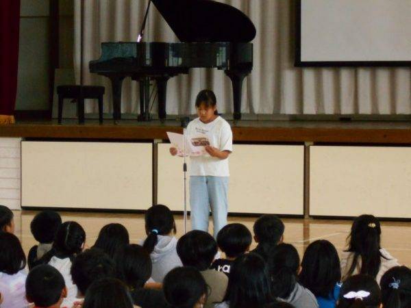 10月10日(金)今日は前期の終業式です。2・4・6年生の代表の児童から作文発表がありました。4月からの振り返りと後期にがんばりたいことなど、それぞれ思いが込められた素晴らしい発表でした。聞いていたみなさんの心の中にも、同じような気持ちがあると思います。新しいことにどんどんチャレンジできる「ひがしっ子」であってほしいです。