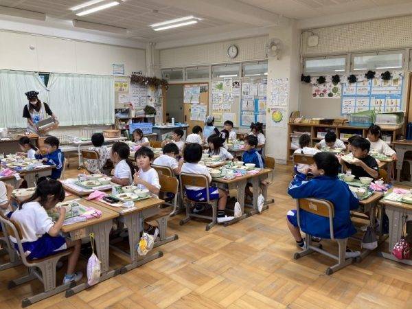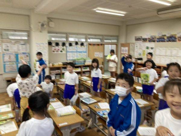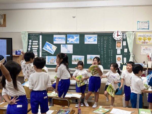 10月14日(火)3連休が終わり、後期スタートです。低中高学年ごとにブロック集会を開き、心構えや目標について話し合いました。4時間目に1年生が国語「くじらぐも」の学習で楽しそうに活動していました。予定されていた「たてわり班愛校作業」は、直前に小雨が降ってきたため来週に延期となりましたので、くじらぐもと給食と昼休みをまとめて掲載します。週末はいよいよ6年生の修学旅行ですね!(^^)!