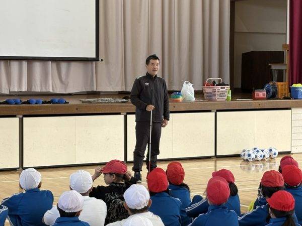 11月7日(金)今日は、ブラインドサッカー元日本代表キャプテン 落合啓士さんによるブラインドサッカー体験学習が行われました。午前中には実技体験、午後は、これまでに経験したことや視覚障害についてお話を聞かせてくださいました。子どもたちからは、「楽しかった」、「見えないことがこんなに怖いとは」、「当たり前に見えることに感謝したい」など多くの感想が寄せられました。体験あり、学びあり…より良い時間となりました(^^)b