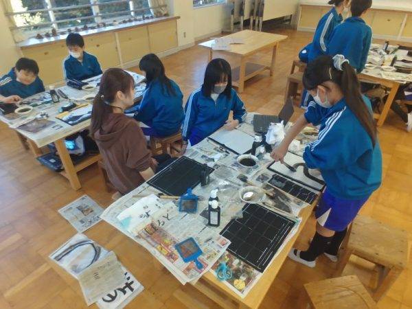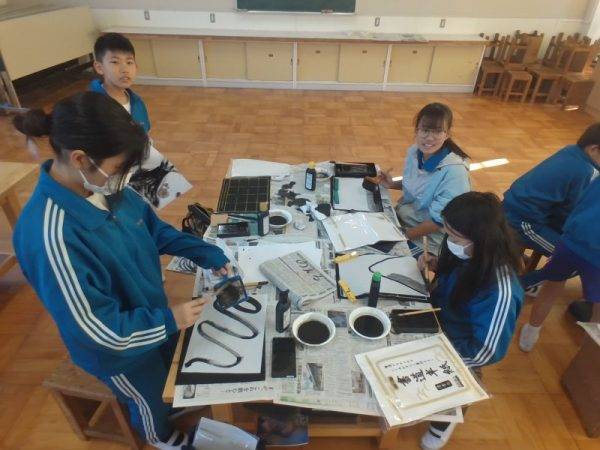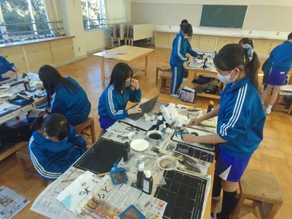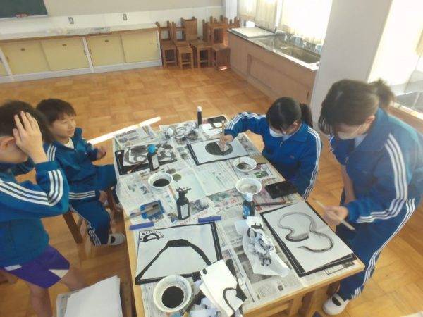 今日は6年2組も墨絵に挑戦していました。これまでに学習した技法を活用したり、友達とアドバイスし合ったりしながら作品を仕上げていました。とても上手にできました。