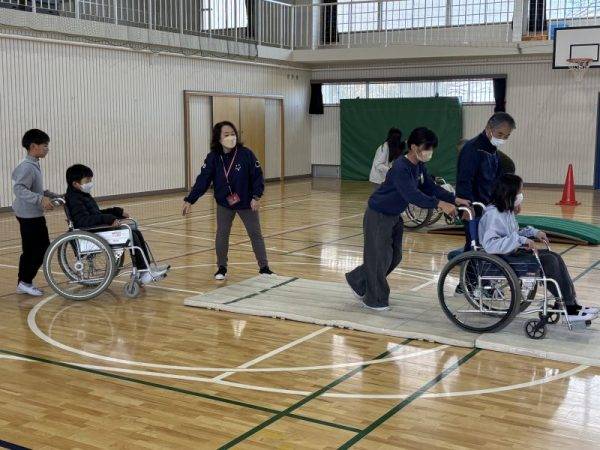 12月10日(水)今日は、鹿嶋市社会福祉協議会のサポートをいただき、4年生が福祉体験学習を行いました。はじめは緊張していましたが、「コツ」をつかむと相手を思いやりながら、丁寧に車椅子を操作する姿が見られました。お出でくださいました5名のボランティアのみなさんありがとうございました。