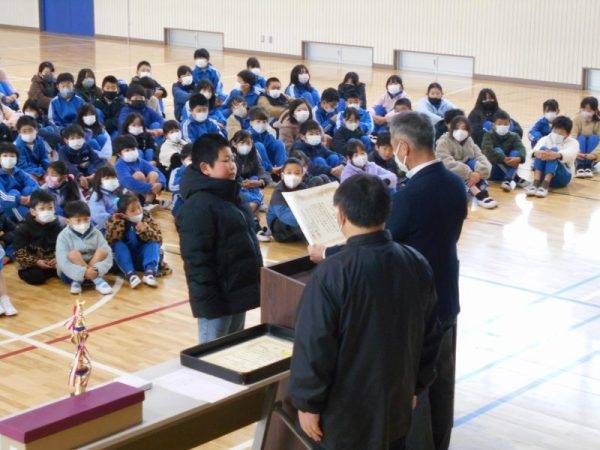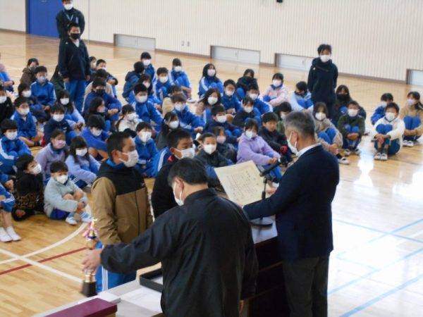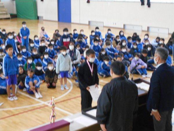 12月16日(火)今日は、持久走大会、作文コンクール、少年団の表彰が行われました。自分の名前を呼ばれて「ハイ」と元気よく返事ができた児童とちょっぴり緊張してしまった児童が見られました。表彰というせっかくの晴れ舞台ですから、元気なひがしっ子であってほしいと感じました(>_<)