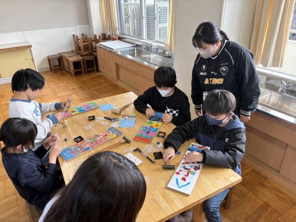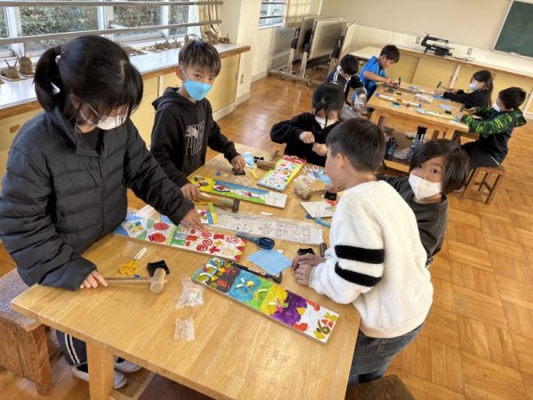 12月22日(月)今日は3年生が図工室で作品の制作に取り組んでいました。上手にビー玉が転がるコツを見つけながら、夢中でトントンしていました。