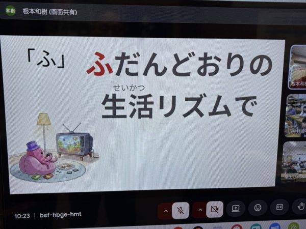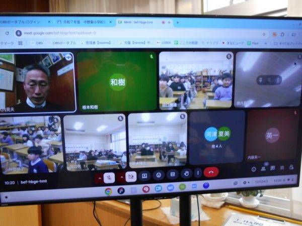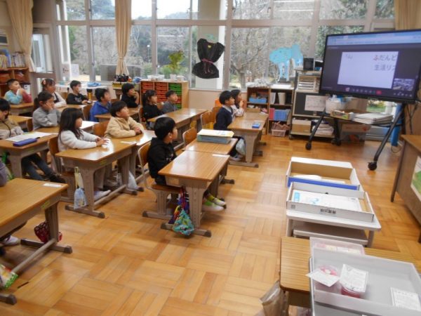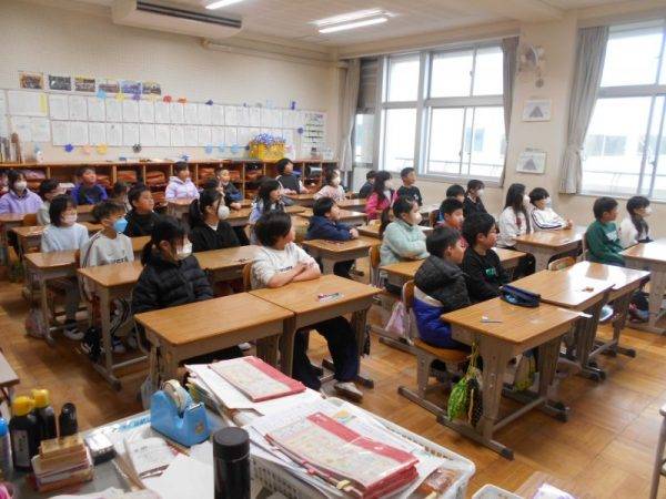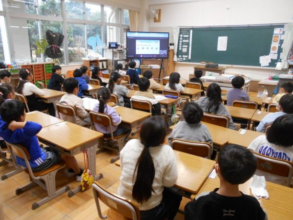 12月24日(水)今日の冬休み前全校集会は、インフルエンザの流行に伴いオンラインで実施しました。生徒指導主事からは、「ふ・ゆ・や・す・み」をテーマにあいうえお作文で安心・安全な過ごし方についてお話がありました。およそ2週間のお休みとなりますが、226名の児童が新しい年を健やかに迎え、元気いっぱい令和8年をスタートできますように‼ 1月8日(木)に笑顔で会いましょう(^^)b