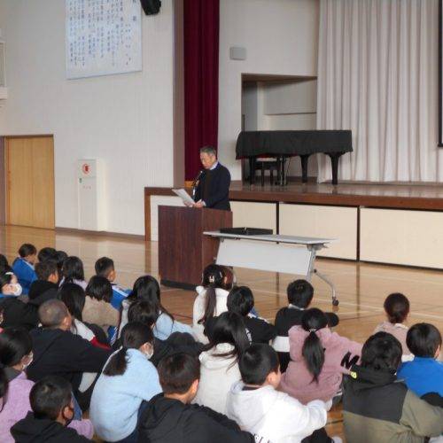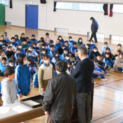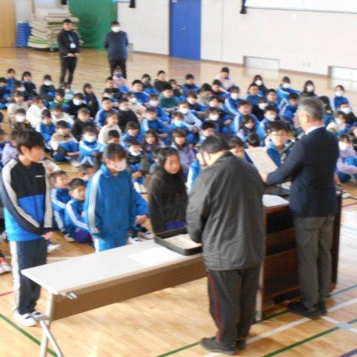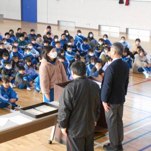 1月13日(火)3連休明け寒い朝となりましたが、体育館で表彰朝会を行いました。