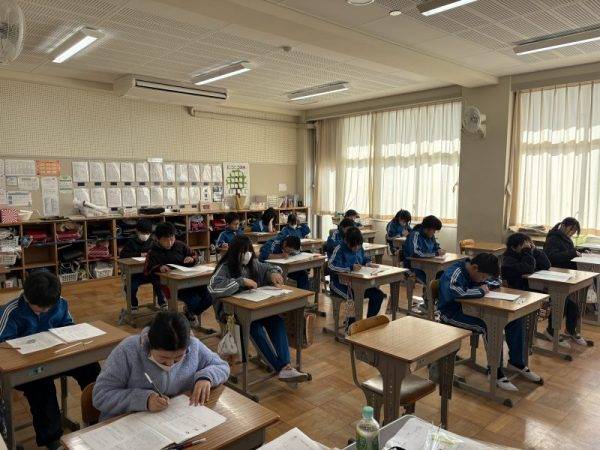 1月15日(木)茨城県学力診断のためのテスト1日目。普段のテストより緊張感が漂っていました。テスト終了直後「ホッ」と一息ついた笑顔がとても印象的でした。明日も…ガッツ‼