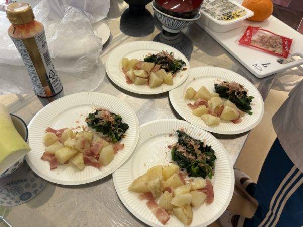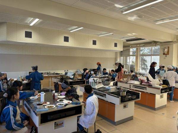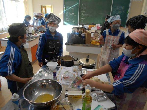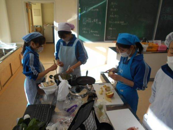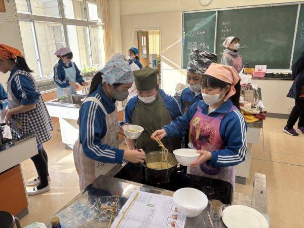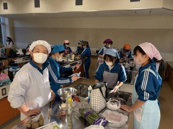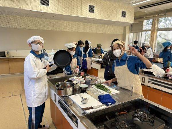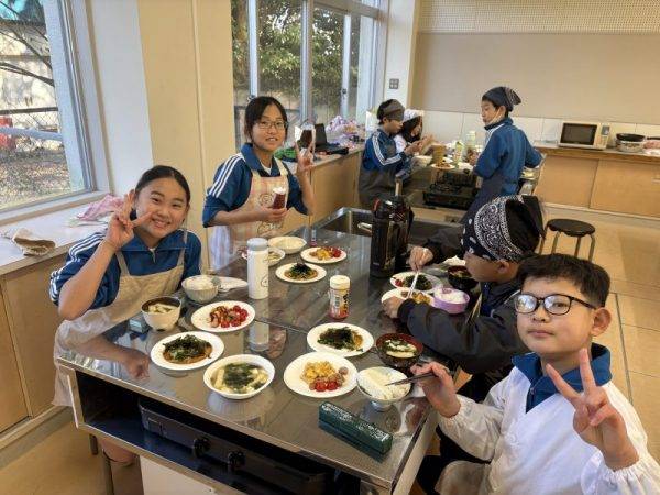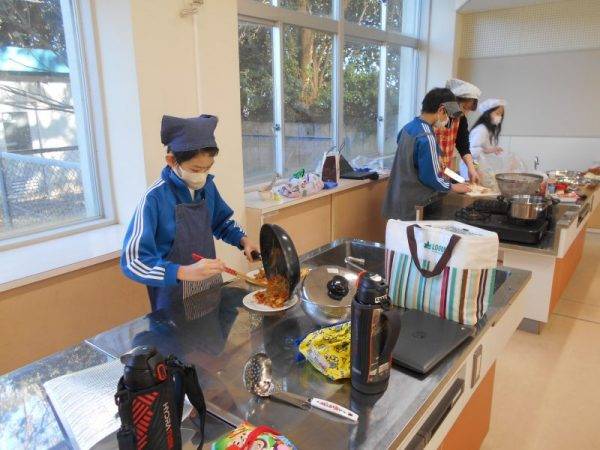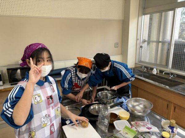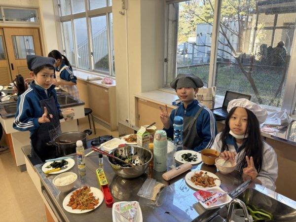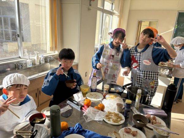 1月23日(金)今日は6年2組の調理実習!クロームブックで手順を確認したり、役割を分担したりしながら、笑顔で活動していました。今日ももれなく、美味しそうなにおいが広がり、下級生たちがうらやましそうに通り過ぎていました(^^)b
