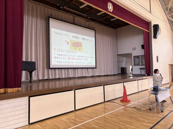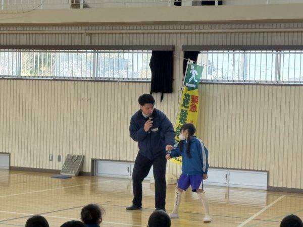 1月29日(木)今日は、鹿嶋警察署のおまわりさんに来ていただき、「不審者対応の避難訓練」を行いました。職員が不審者と対峙する際の留意点や子どもたちが登下校時に不審者に遭遇してしまった時の対処法等々について、体験を交えてお話してくださいました。鹿嶋警察署のみなさん!ありがとうございました。