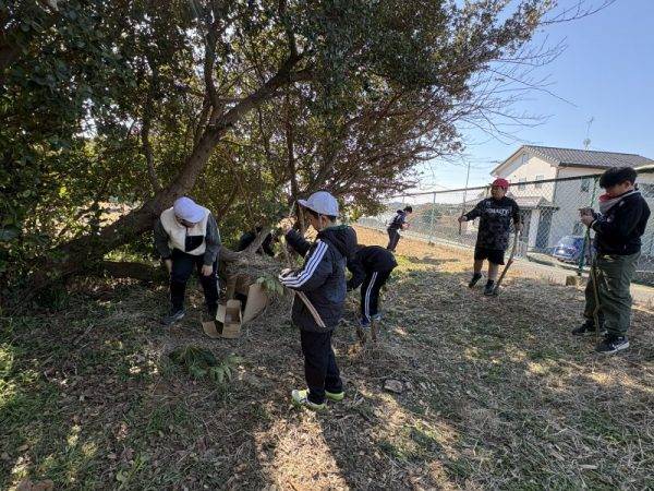 2月4日(水)休み時間に「何しているの~?」と尋ねると「秘密基地つくってんだ~」と答えてくれた子どもたち!「ホームページに載せてもいい?」と聞くと「秘密だけどいいよ!」と快くこたえてくれました。休み時間といえば「サッカー」だった子たちの「遊びの幅」が広がってきたようです(^^)b