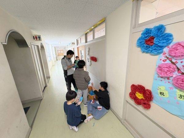 3月18日(水)卒業式前日の午後は、1年生から5年生が心と力を合わせて、飾りつけやお掃除を行いました。みんな生き生きと活動していて、明日を待つばかりです!!! 欠席者も昨日に引き続き一桁で、いい感じです。このあと少し雨が降るようですが、明日の開式前には止む予報が出ていますので、信じて待ちましょう(^^)b