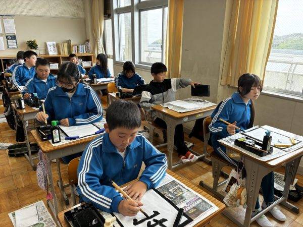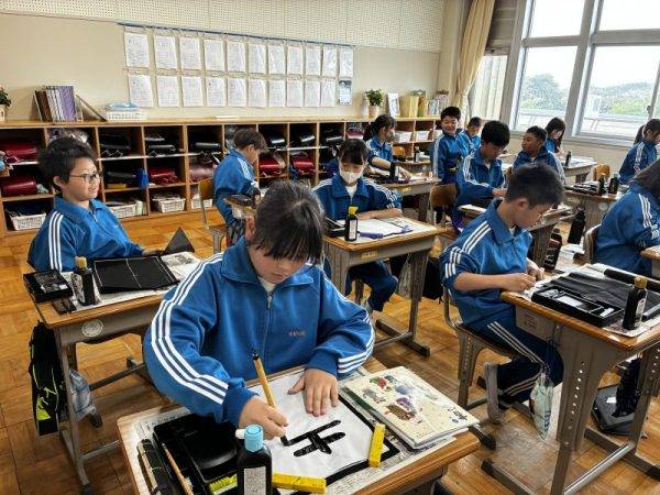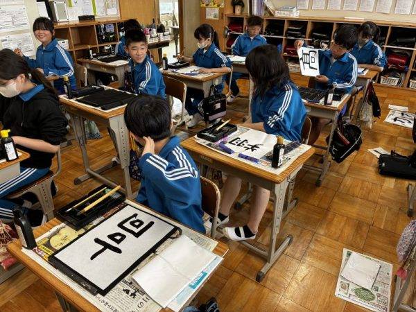 6年1組は、書写の時間に好きな漢字を1文字書きました。自分の名前に関わる漢字や好きなことなど、一人ひとり違う漢字を書きました。2組も同じように、好きな漢字を書きましたので、授業参観の際にぜひご覧ください。