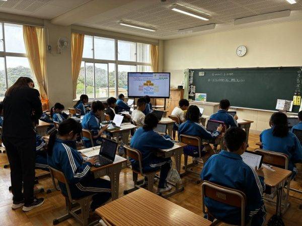6年2組は、家庭科の時間に自分の生活時間について、タブレットを活用して振り返りました。学級で時間の過ごし方を共有し、時間の使い方を工夫することの大切さに気付くことができました。