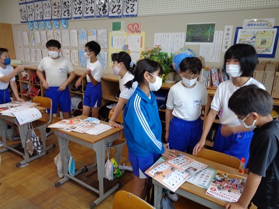 Could you talk about favorite subjects ?5校時,5年生の教室では英語科の授業が行われています。3~4名ずつのグループに分かれて,Memory gameを行いました。
