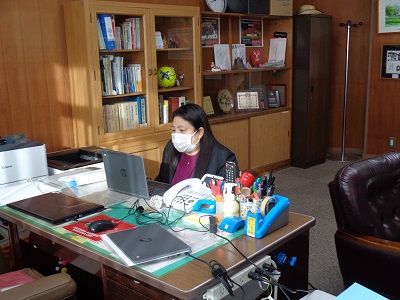 3学期始業式午前8時40分から,オンラインで3学期始業式が行われました。