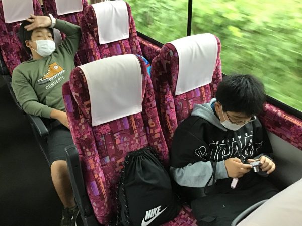 1組のバス車内です。朝とは思えないくらいかなり元気です!