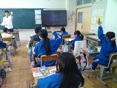 今日の中野東小は晴れ時々くもり、午前10時40分現在の気温は13度です。3校時、4年生の教室では社会科の授業が進められています。