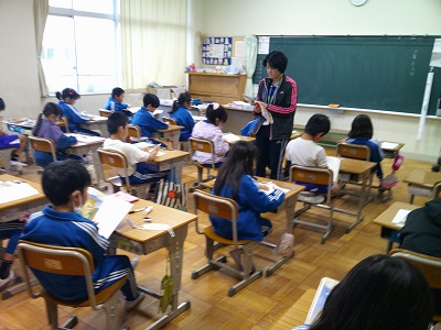 今朝の中野東小は雨、午前8時40分現在の気温は11度です。1校時、3年生そして2年生の教室では国語科の授業が行われています。
