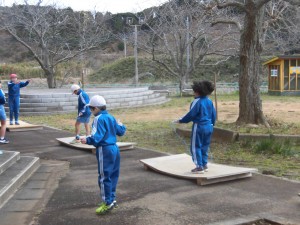 3学期に入り,各学年や縦割り班で「八の字跳び」の練習や