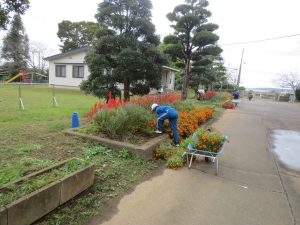 花壇にあったマリーゴールド、サルビア等を抜き、片づけました。
