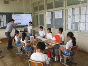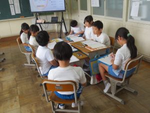 何冊かの本を選び、「出来事」「言葉の使い方」「絵」とういう観点から決め方を考えました。理由を付け加えながら、どの本にするかを司会、時計係、記録係と分担して進めていきました。決まると、参観していた別の班から感想を伝えてもらいます。