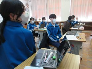 6年生の英語の授業で中野東小学校の6年生と交流しました。プレゼンと質問と答え。未知の状況にも対応できる力の育成をめざします。