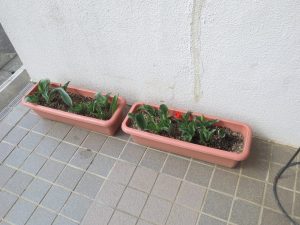 秋に植えたチューリップも、つぼみがあります。