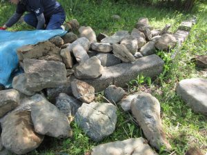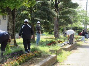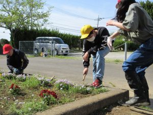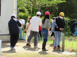 北浦の水生生物が元気に泳いでいたビオトープ。閉校に伴い、閉める準備を始めました。今日は、まわりの石を動かしました。6年生が力を合わせて、作業を進めました。その後は、授業参観にそなえて、花壇の草抜きもしました。きれいにして、おうちの人を迎えます。