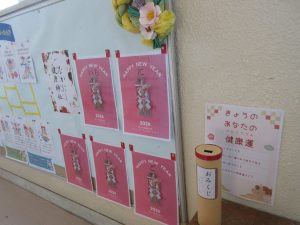 8日から学校が始まりました。 階段の踊り場には、健康おみくじがあり、大人気です。毎日引いて楽しんでる児童や教員がたくさんいます。 今年も皆さんが健康で過ごせますように・・・そして、幸せでありますように。