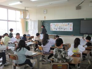 あいにく雨のため、昇降口で一斉下校を行いました。 雨の中でも、徒歩で帰る児童が多いため、下校前の安全指導をしっかりと行っています。 閉校までの間、徒歩で登下校する日々を、安全に、しっかりとかみしめましょう。