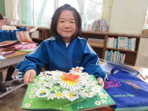 卒業式にきれいなお花を活けていただいた地域の方が、学校にいらっしゃいました。花がある生活は、人の心を豊かにします。絵や芸術や音楽も、心を育て、情緒を安定させてくれます。子供たちのためにできることを考えてくれているそうです。ありがたいことです。