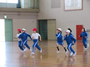 5・6年生の体育は、50m走の記録を取りました。速く走るためのポイントを確認し、全力で走っていました。